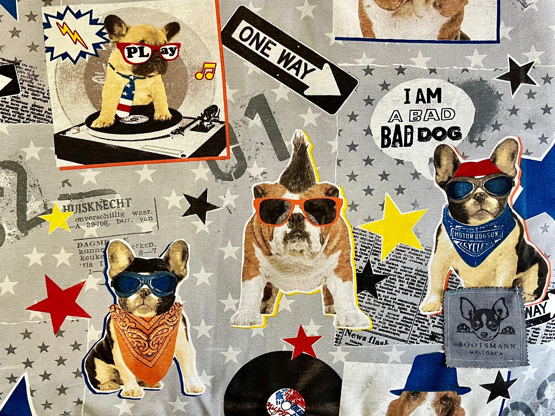 Hundecomic-Stoff mit wolliger Vliesunterlage, flauschige Füllung.