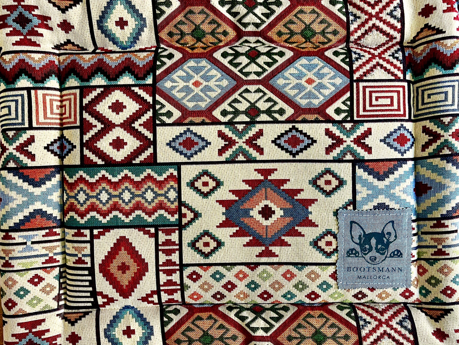 Gestickter Stoff im Inka-Stil mit wolliger Fleece-Basis, flauschige Füllung.